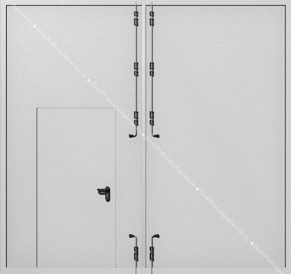 Распашные крупногабаритные ворота ei-60 с калиткой (цвет светло-серый RAL 7047) Арт-19